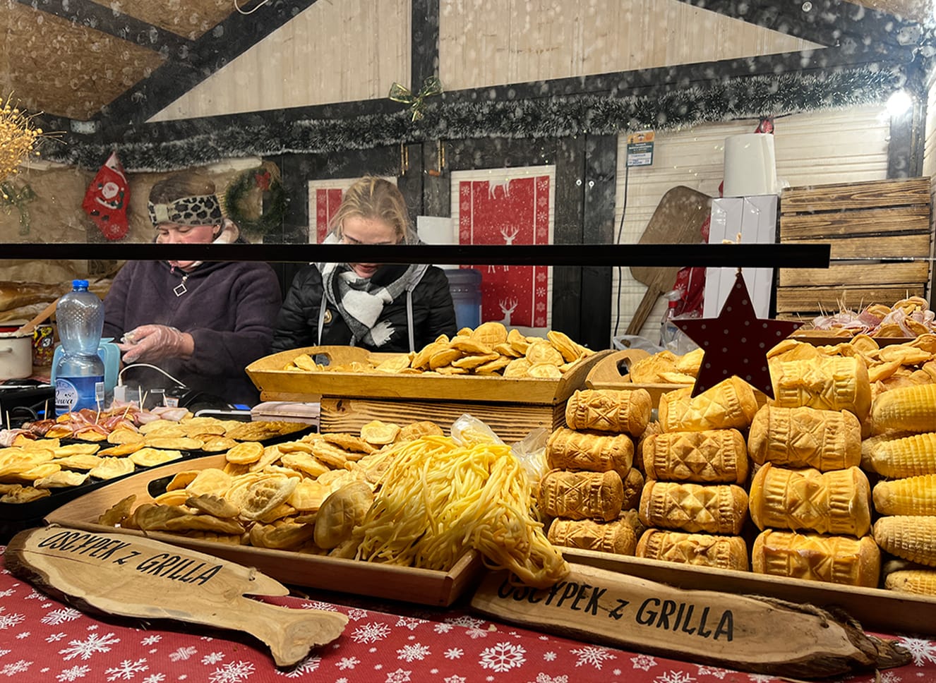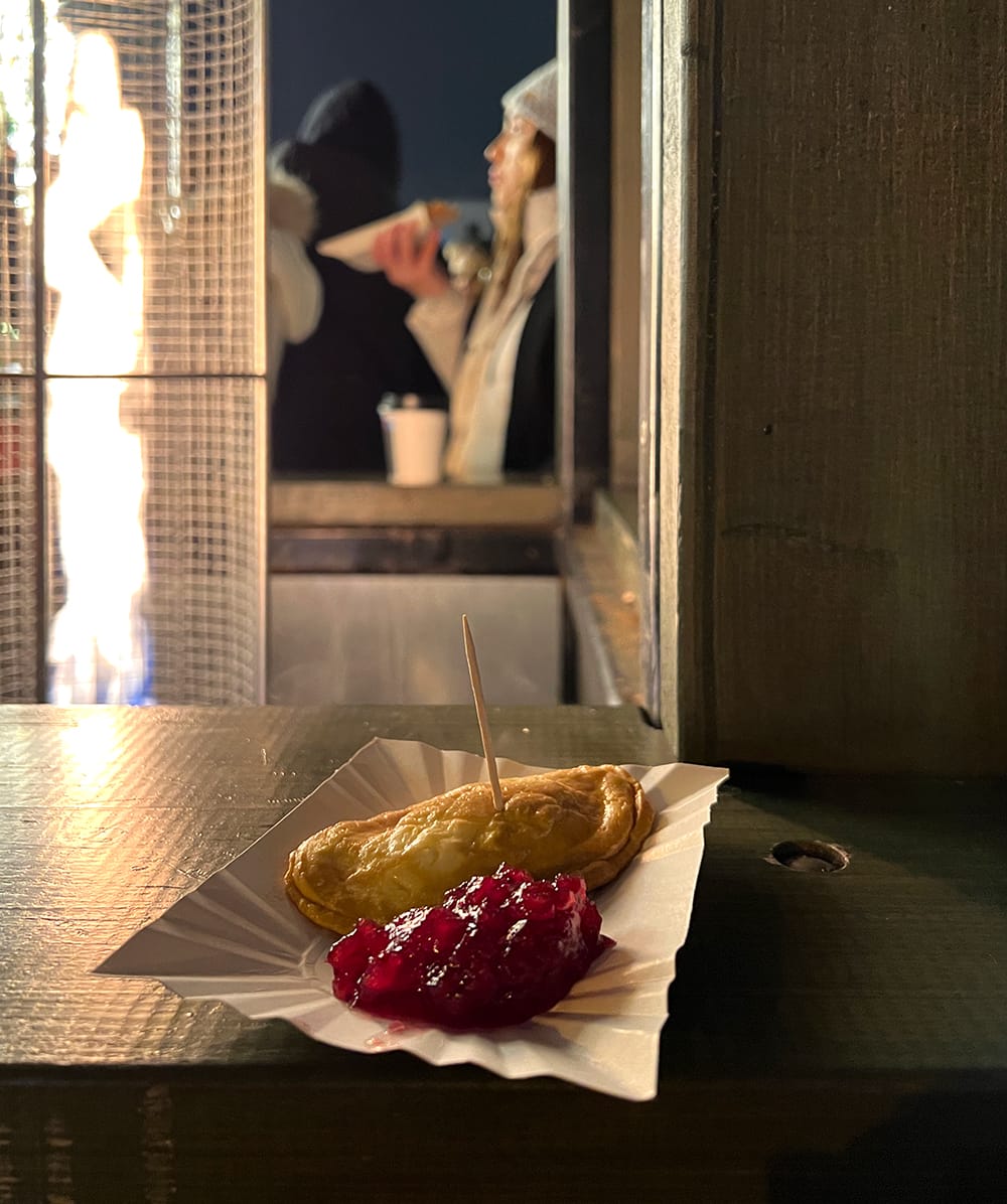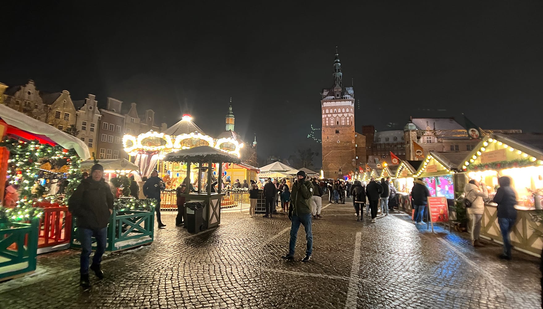 Now that it's December, the Christmas season is in full swing. The Gdańsk Christmas market sprung up a week ago with rows and rows of booths selling everything from hot wine, grilled cheese, Christmas ornaments, hats, hot wine, artwork, waffles, Hungarian funnel cakes, and more hot wine.
