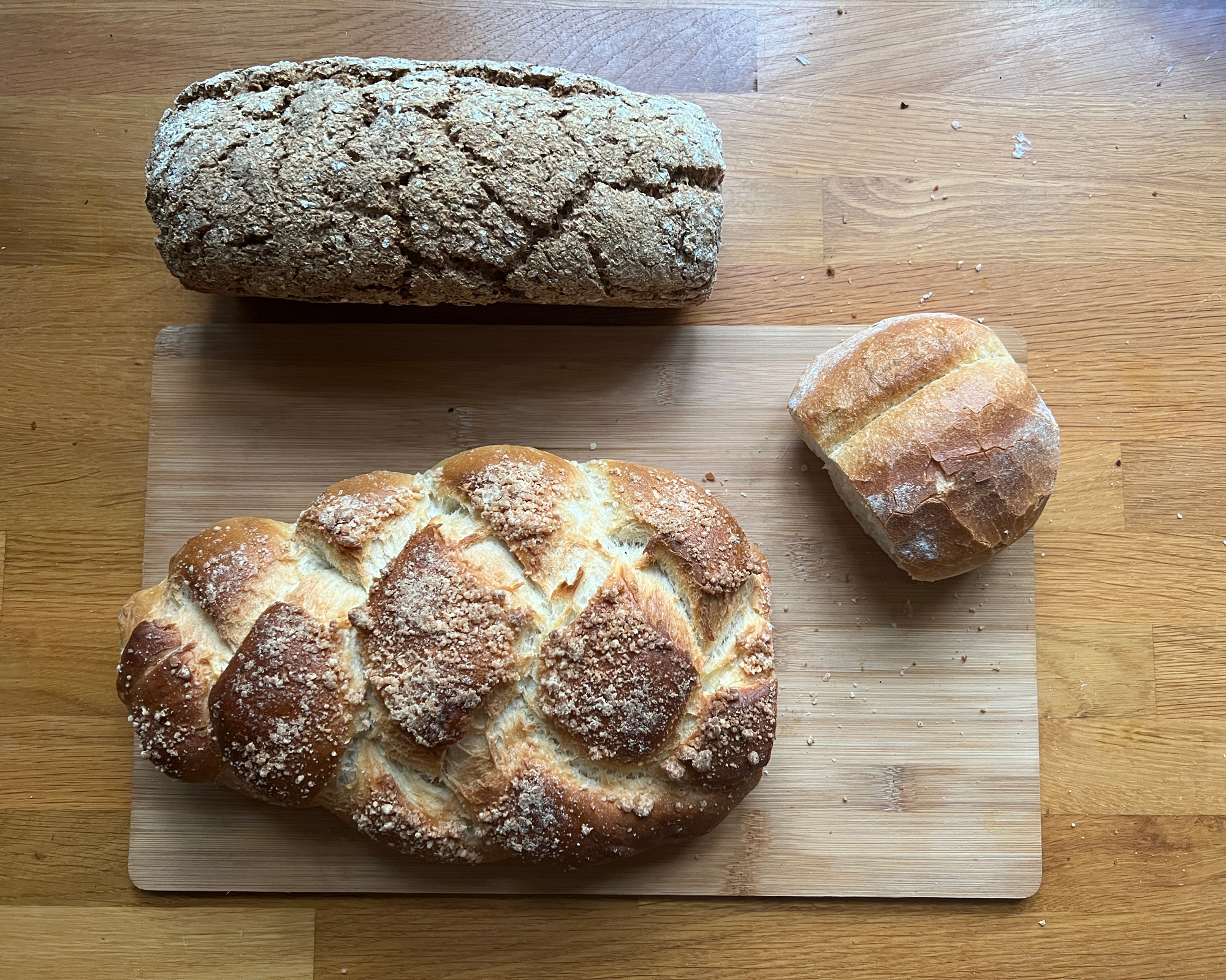 I had the challah for breakfast, and it was delicious. Sweet and a bit chewy, how it should be. I toasted it and had it with plum preserves from my cousin. The roll had a thin crunchy crust and a soft inside. The rye bread was a challenge to cut as foretold, but had a dense soft inside. It was perfect later in the day with paté and pickles, and later with herring. Both breads lasted me a week, though towards the end they were better toasted. It is definitely worth getting up early from time to time.