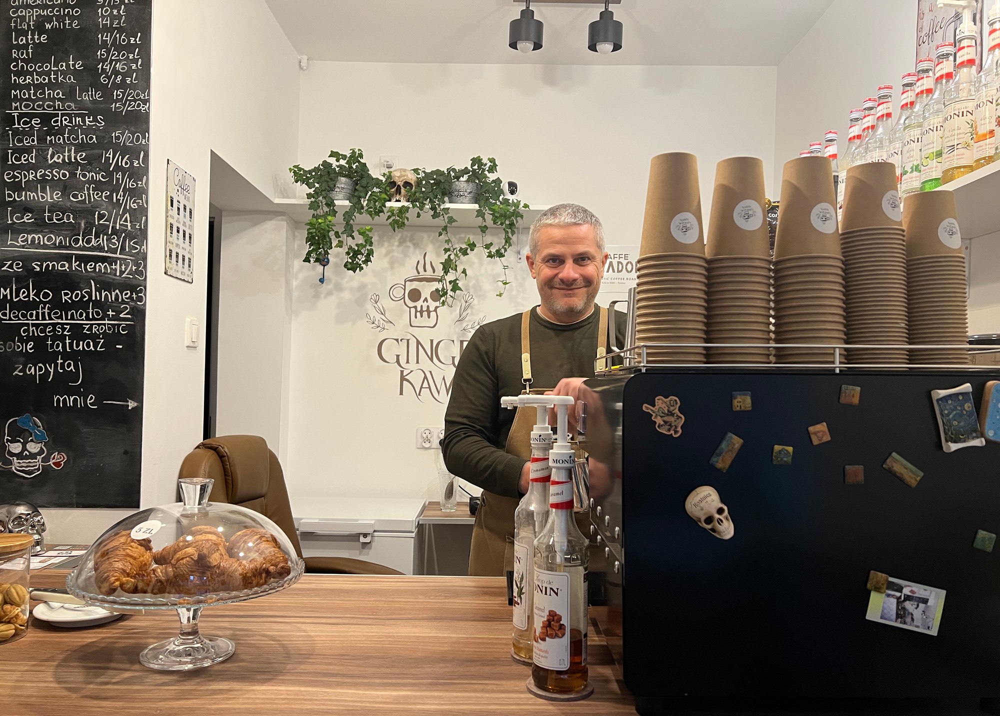 I returned home with the loot, stopping at my favorite coffee place, Ginger Kawa. It is one of the few coffee places in Gdańsk that opens at eight–most of them wait until ten, for some reason. Ginger Kawa is tiny, with a single bench for sitting, and a charming Belarusian gentleman making delicious coffee drinks. It offers a powdered ginger topping which adds an extra zing to a cappuccino or a flat white. You can also get a tattoo while you are at it, from the barista's wife.