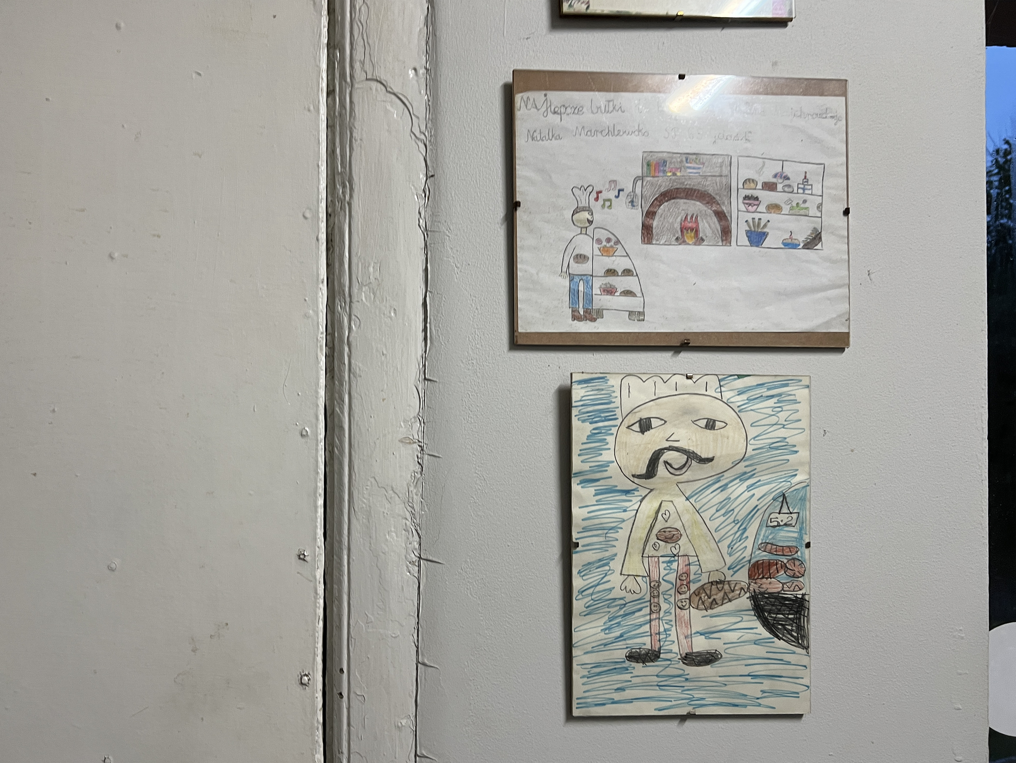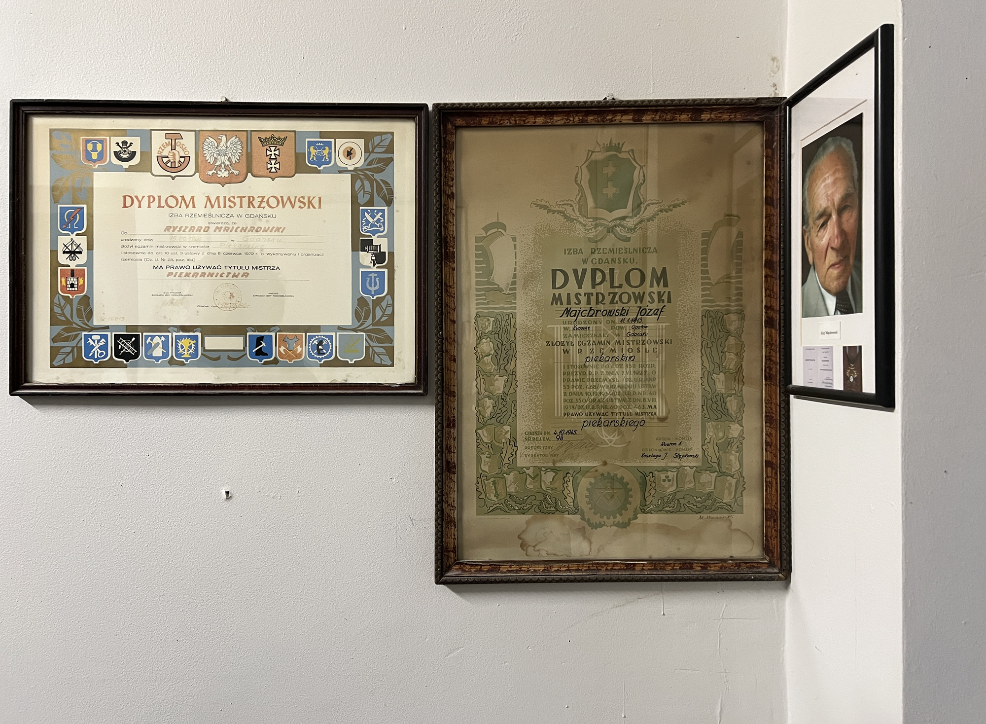 Through the warm yellow window I could see shelves of bread and an older lady dispensing it to customers. Inside, it was a time capsule. The walls were lined with old master baker diplomas and baking awards bestowed on generations of Majchrowskis, as well as a few children’s drawings on the subject of bread making. When my turn came, I ordered a challah, a rye bread, and a roll. The bread lady explained that I should cut the rye bread from the bottom, because the top crust was very hard.