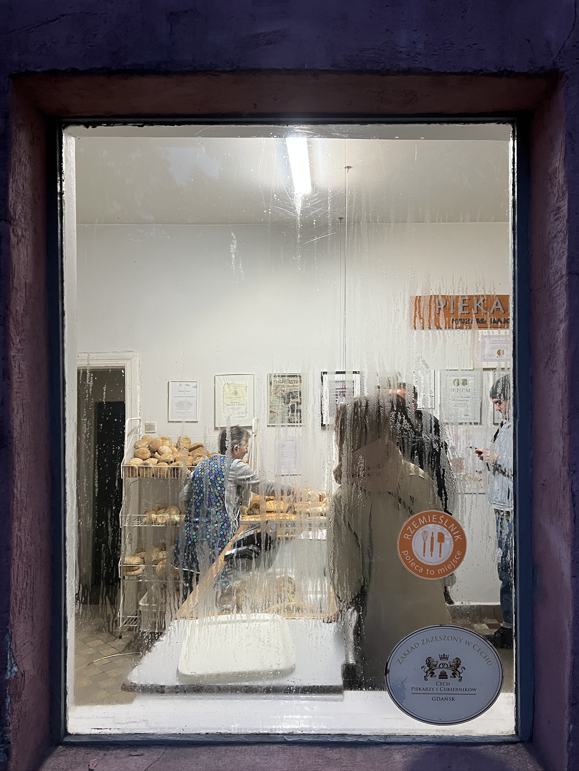 More freedom often means less money, so I’m determined to learn to appreciate the simple things in life. Last week I decided to get up early in search of good bread. While I’ve had pretty good bread in Gdańsk, it still wasn’t quite what I remembered from my childhood–few things ever are! I learned that there was an old fashioned bakery on the outskirts of the old town. Trick is that it opens at six and closes at noon, and most of the bread is gone by nine.